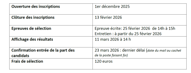 Pour être admis, le candidat doit obtenir un total d’au moins 20/40 aux épreuves ci-dessus.